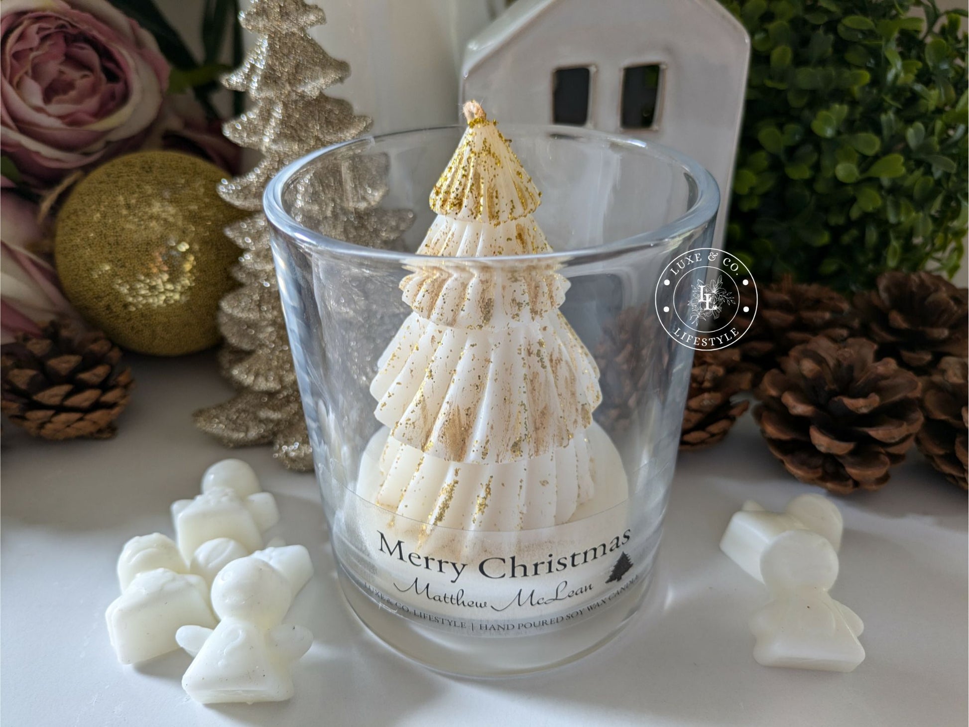 Our gorgeous customized Christmas Tree candles are individually hand made and poured creating a beautiful personal gift, or perfect Christmas decor for the dining table. (Can be label free).