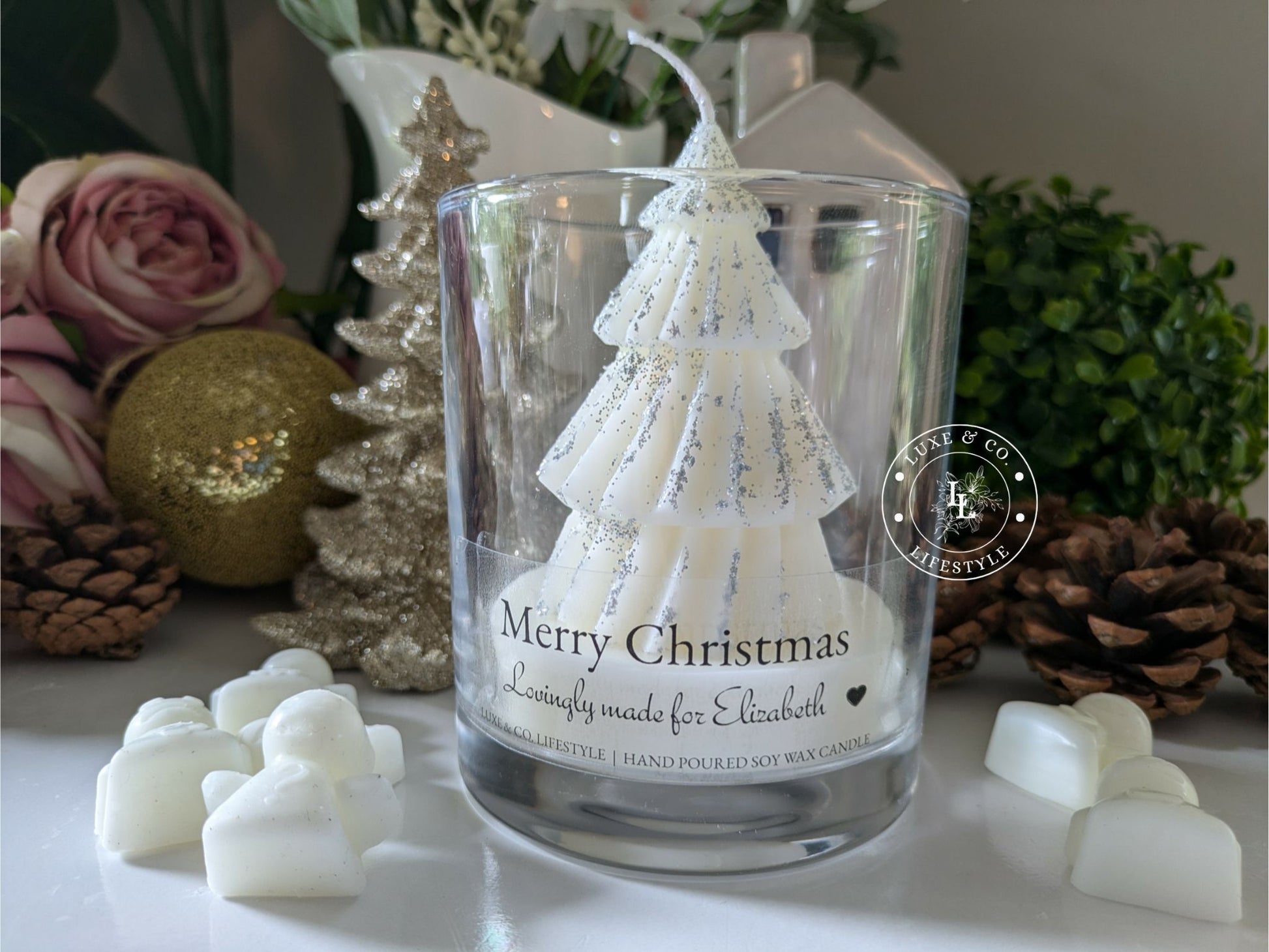 Our gorgeous customized Christmas Tree candles are individually hand made and poured creating a beautiful personal gift, or perfect Christmas decor for the dining table. (Can be label free).