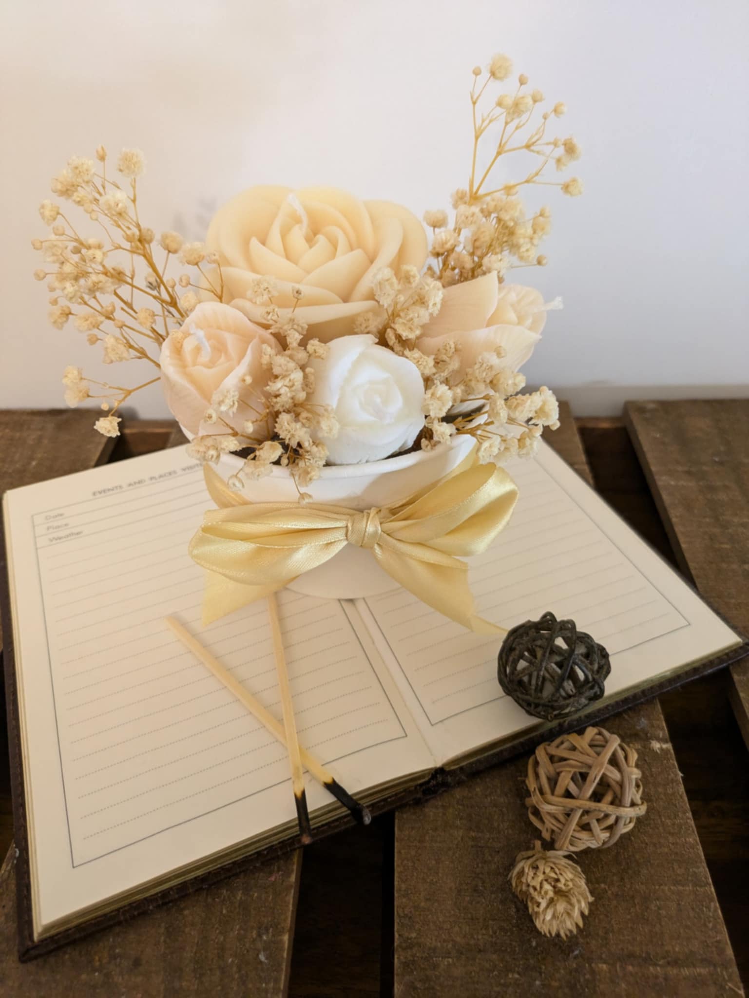 Our divine floral candle bouquets are made with 1x large rose candle and 3x tulip candles with real dried florals.