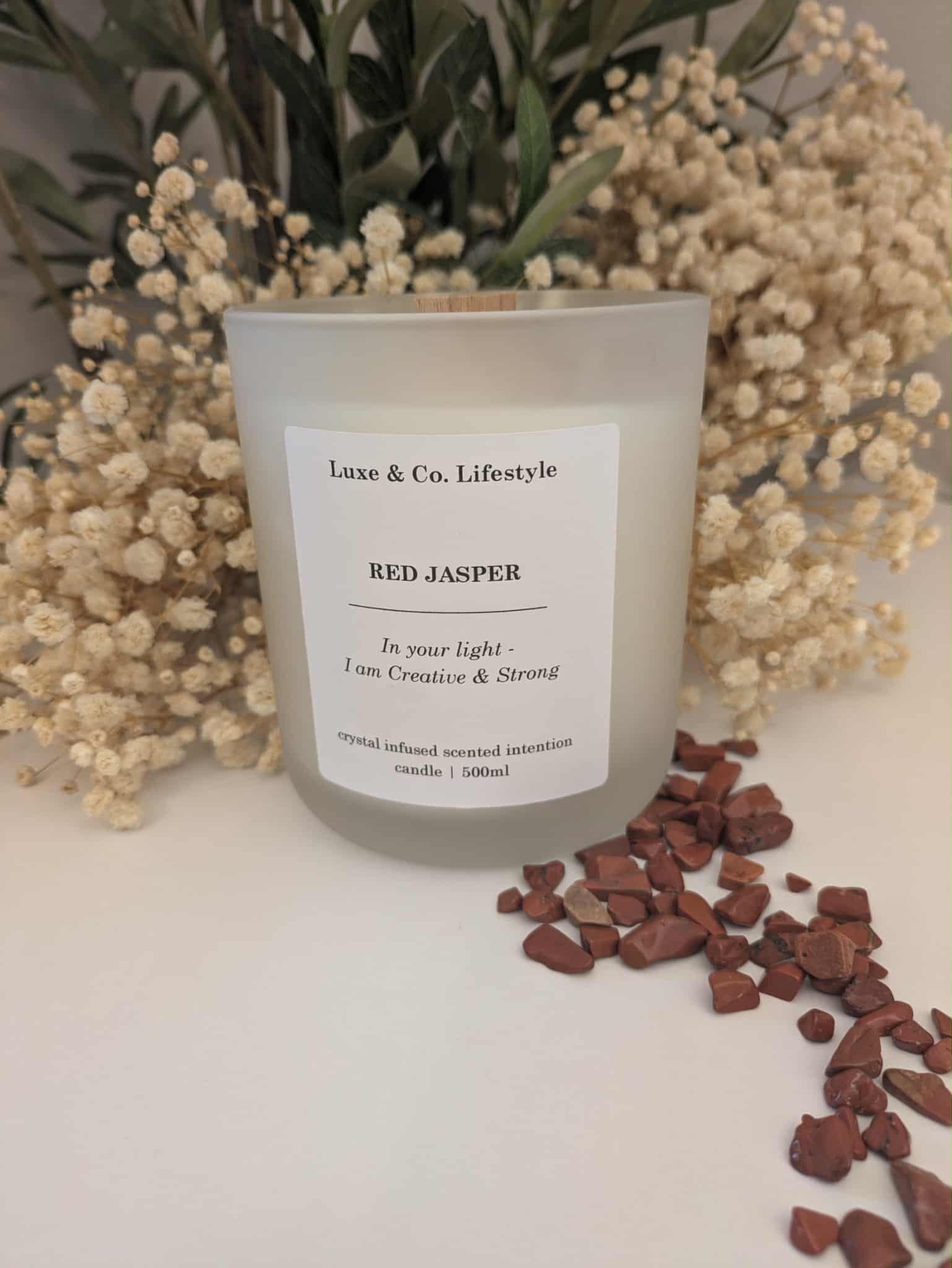 RED JASPER Crystal Infused Intention Candle - Creative & Strong