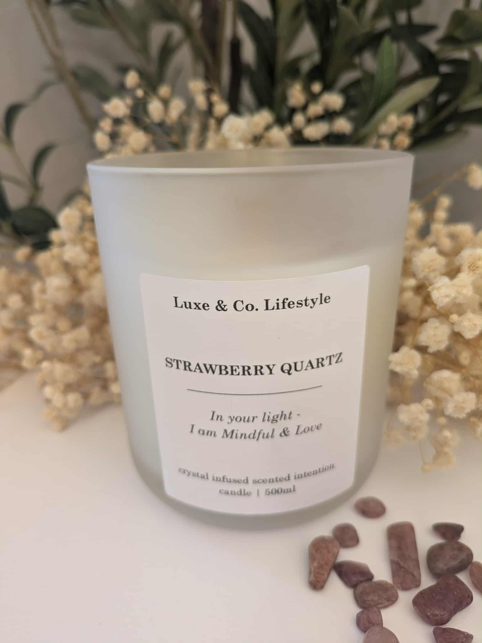 STRAWBERRY QUARTZ Crystal Infused Intention Candle - Mindful & Love